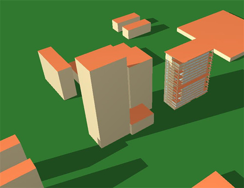 由于我们的城市规划要求沿路的建筑立面需要与道路流线相协调来保证城市的美观。因此平日里我们遇到的建筑,并不全都是正南正北的朝向,会随着道路的走向,有一定的偏转。以合肥市繁华大道与宿松路交叉口为例,道路的通行方向迫使周边的建筑以南偏东或偏西的形式设计和建造。这些建筑的北立面在夏季的下午将会受到长时间的太阳直射光的影响。